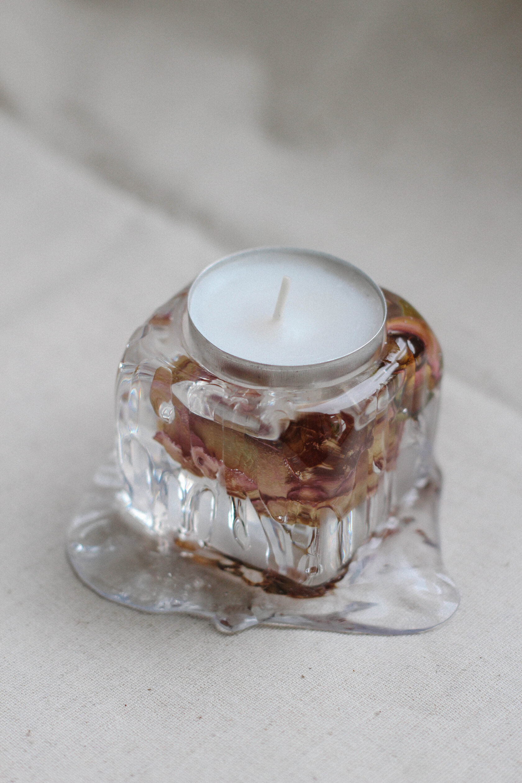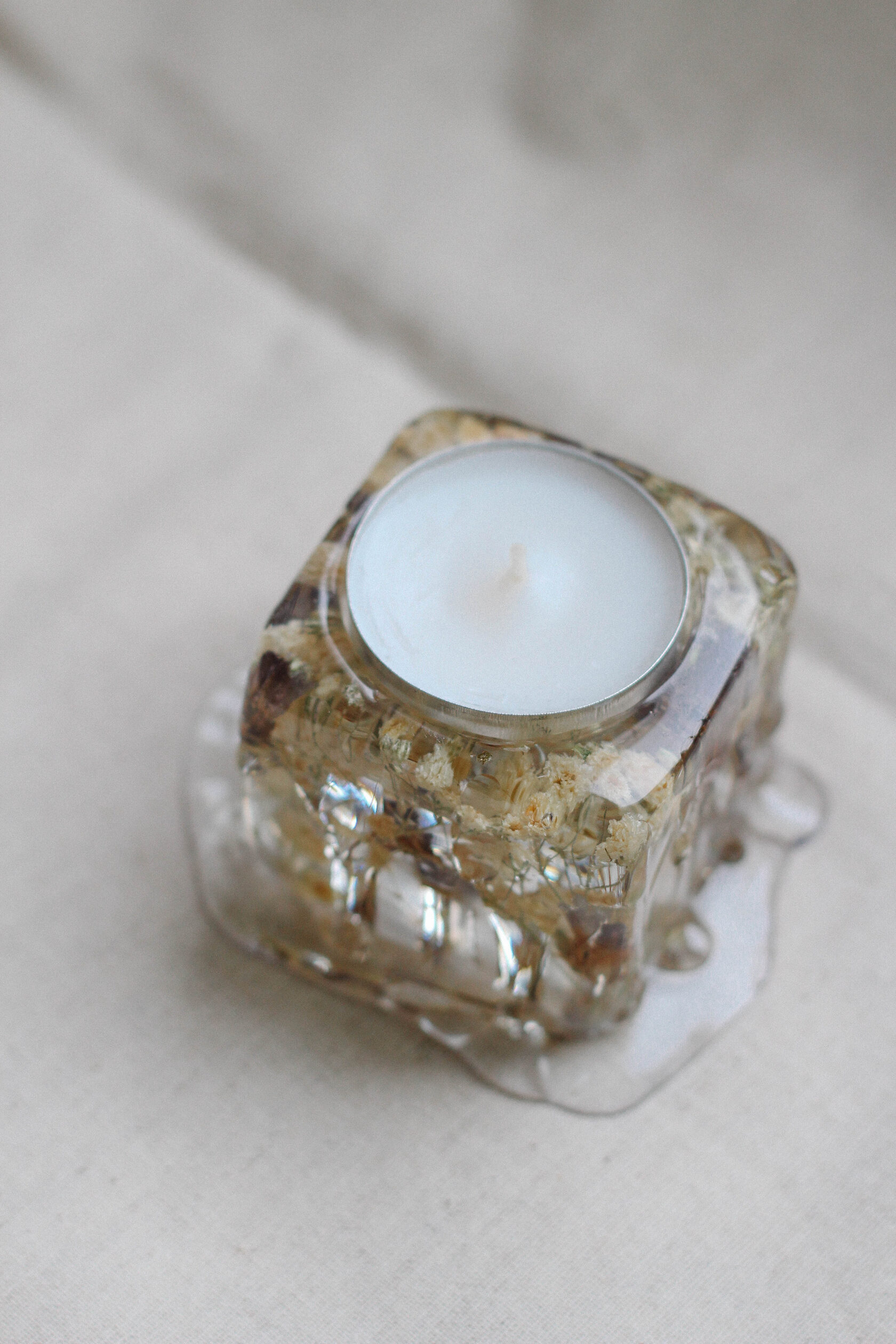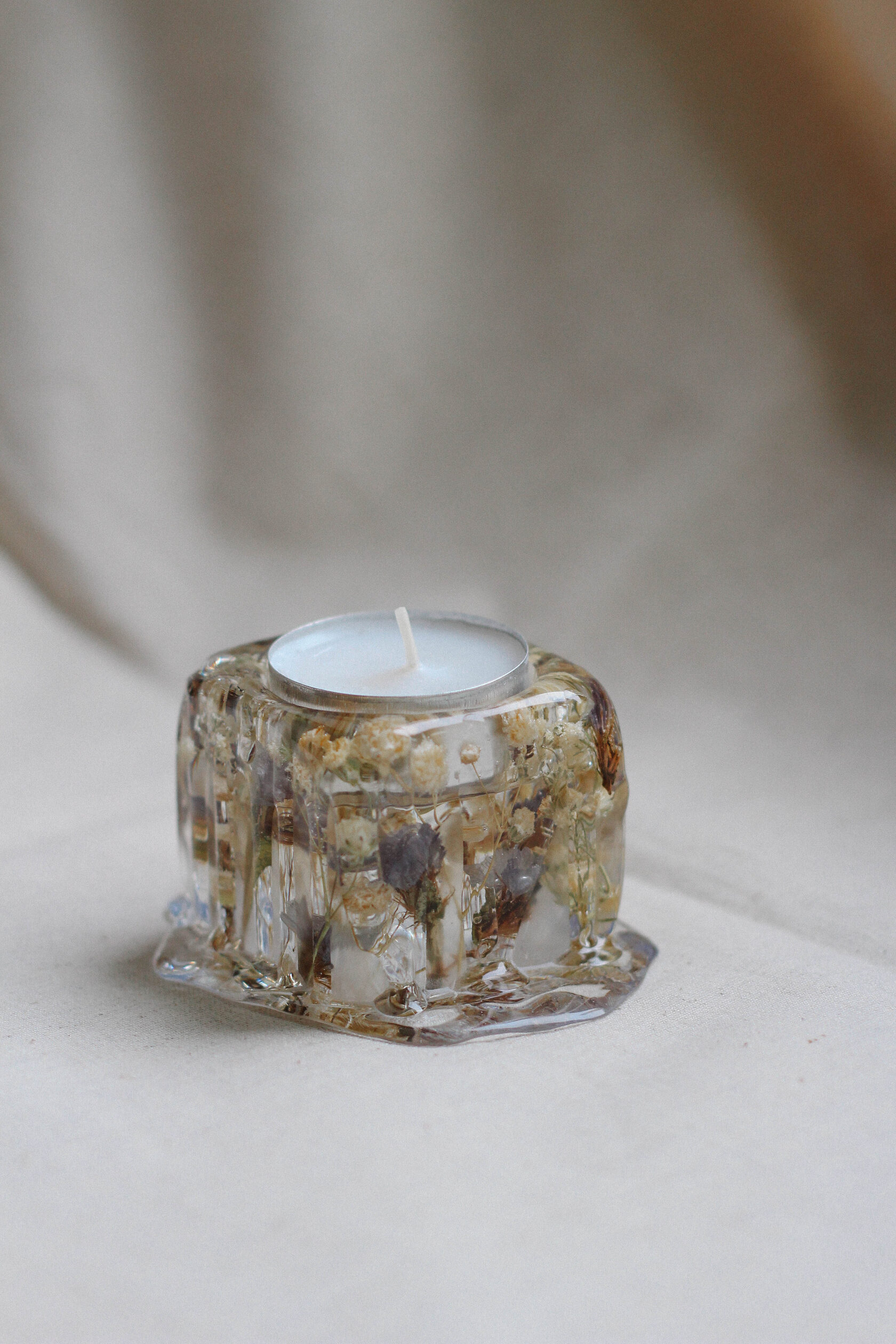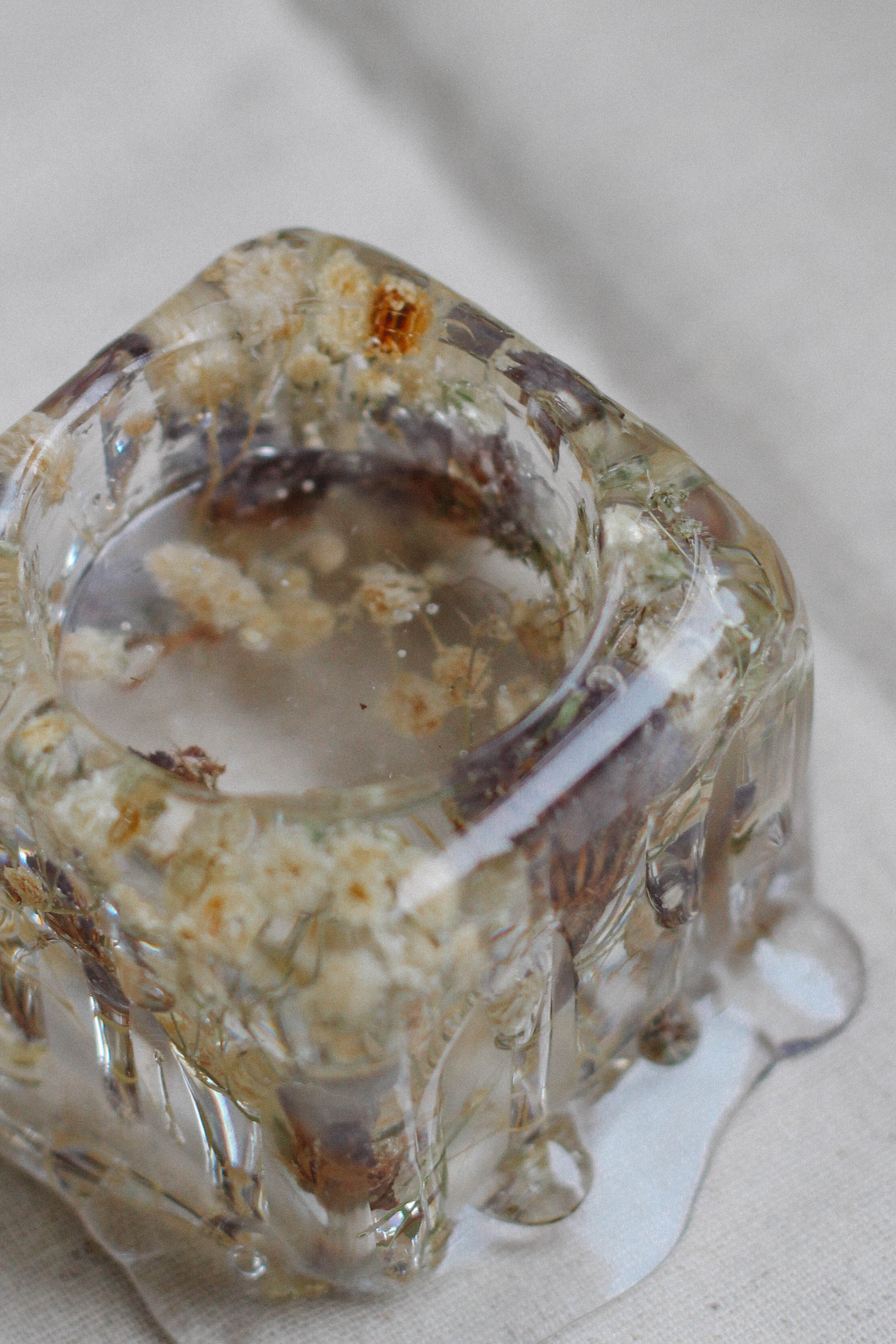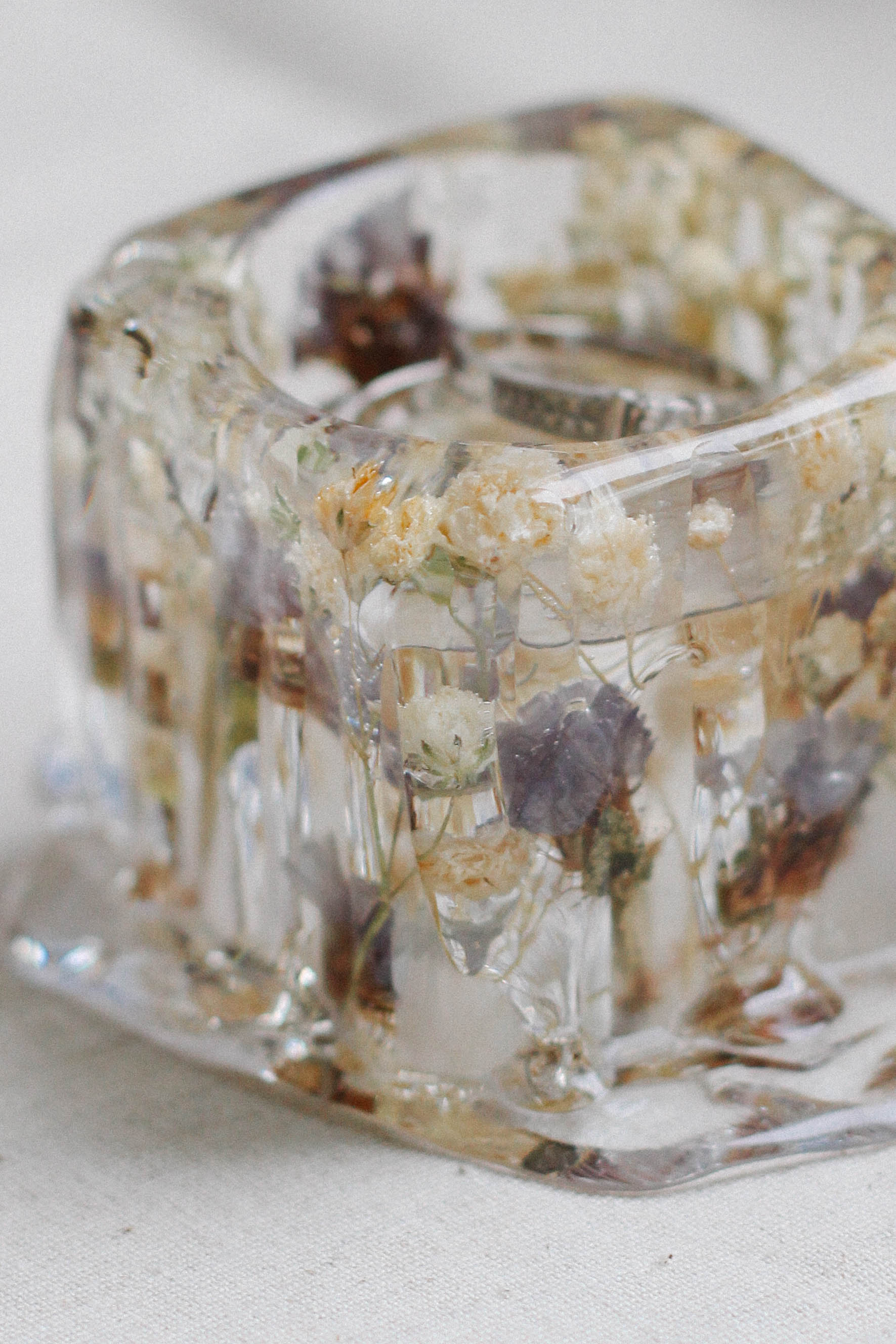 Коллекция LIMITED- уникальные изделия, которые не имеют повторов. Нежные цветы словно застыли в прозрачной льдинке. Свет свечи мягко играет на гранях, раскрывая природную текстуру растений и создавая ощущение спокойствия и тепла. Этот подсвечник объединяет хрупкость природы и чистоту формы, превращая обычный вечер в момент присутствия и уюта. Также может служить для хранения самых ценных украшений. Эта коллекция- маленькие произведения искусства, хранящие в себе ценность и энергетику ручного труда.