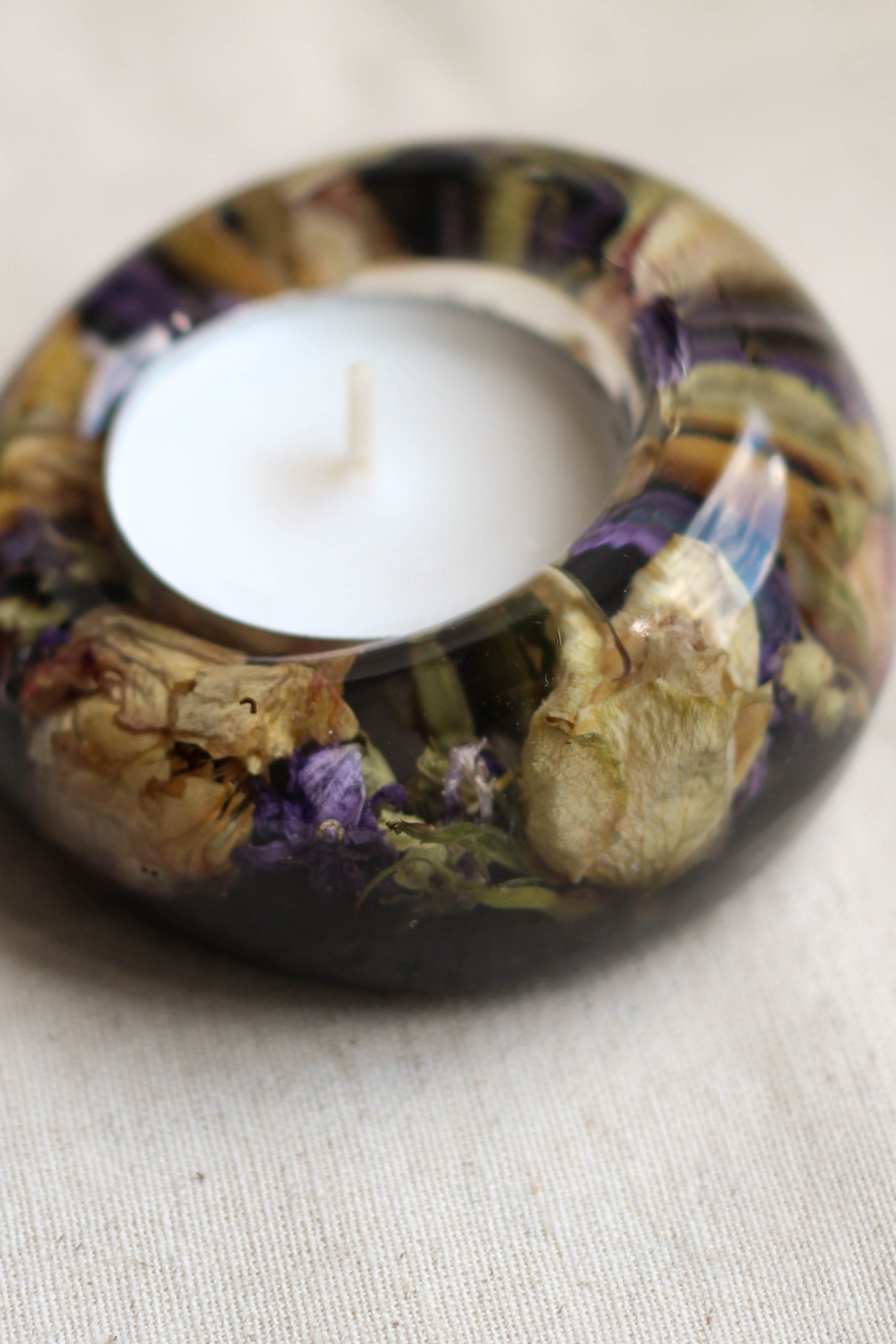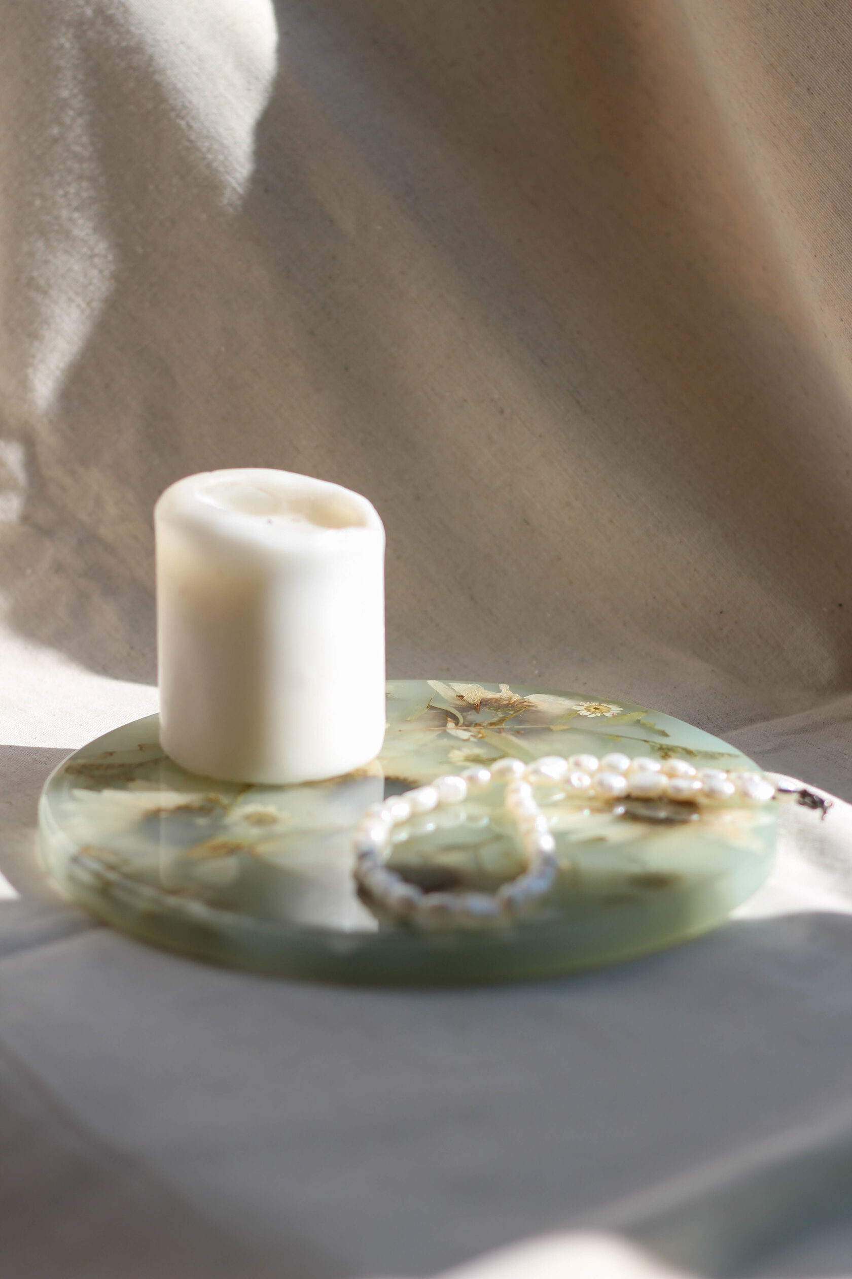 Подиум из эпоксидной смолы станет утонченным дополнением вашего интерьера. Натуральный цветы, природные оттенки переносят в тот самый теплый летний вечер. Подойдет для хранения любимых украшений или уютных вечеров при свечах.