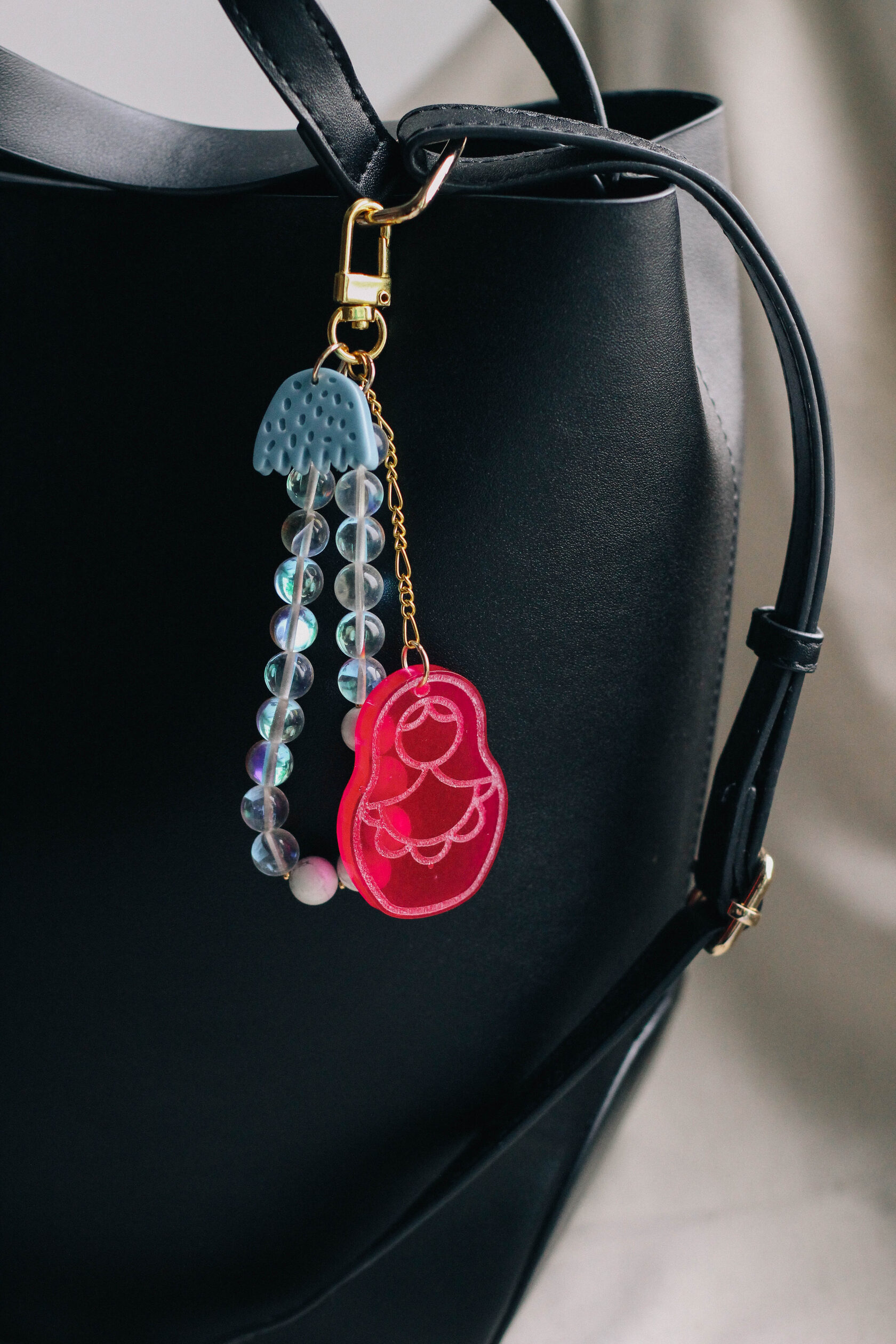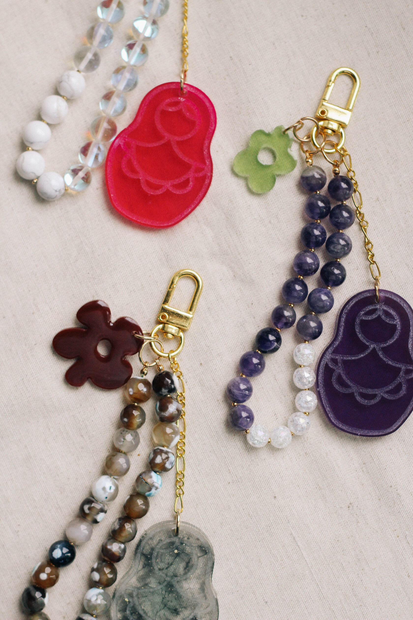 Яркие обвесы MATRESHKA — это маленькие талисманы радости и уюта. Матрешка из эпоксидной смолы в сочных оттенках сочетается с натуральными камнями, создавая ощущение баланса между ярким настроением и природной гармонией. Натуральные камни добавляют изделию тепло и естественность, а образ матрёшки — что-то очень знакомое, родное и спокойное. Такой обвес хочется носить с собой: на сумке, ключах или рюкзаке — как небольшой источник дофамина и хорошего настроения. Каждое изделие сделано вручную и имеет свой характер. В наличии ограниченное количество — каждая MATRESHKA уникальна.